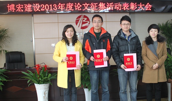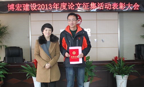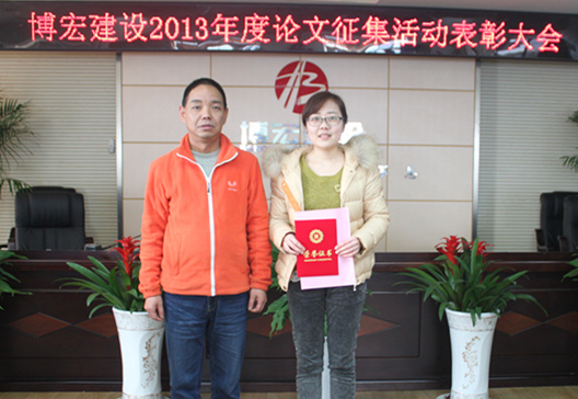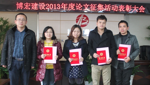 2014年3月5日下午在武漢博宏建設有限公司會議室舉行了2013年度博宏建設論文征集活動表彰大會,財務室鄒璇同志的論文《試論博宏公司如何分攤企業管理費用的方法探討》榮獲一等獎。