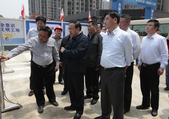 5月5日,武漢市市長唐良智、副市長張光清一行蒞臨博宏建設十升路道排工程項目施工現場檢查指導工作。