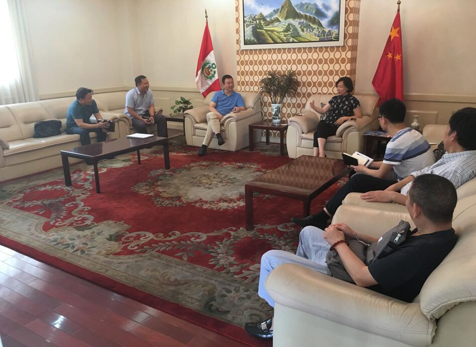 考察團(tuán)隊(duì)會見中國駐秘魯大使館經(jīng)濟(jì)商務(wù)參贊處郝沁梅參贊(右四)