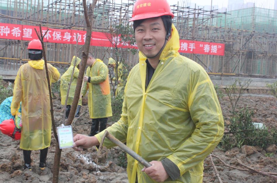 在公司領(lǐng)導(dǎo)宣讀《“春播”環(huán)保活動(dòng)倡議書》,項(xiàng)目經(jīng)理交底植樹注意事項(xiàng)、種植方法后,大家按照預(yù)先分組情況,由組長(zhǎng)帶領(lǐng),有序領(lǐng)取植樹相關(guān)物資,集體前往種植區(qū)域開展植樹、種草?;顒?dòng)中,集團(tuán)公司領(lǐng)導(dǎo)與博宏班子成員也積極參與到動(dòng)手隊(duì)伍中來(lái),親手帶頭栽下一棵棵樹苗,大家有說(shuō)有笑,你一鍬,我一鏟,你扶樹,我刨土,大家擼起袖子揮手大干,眼看著一排排樹苗就在大家合作下迅速站立起來(lái)。天公作美,一場(chǎng)及時(shí)小雨為新栽樹木送來(lái)雨水滋潤(rùn),三月的微風(fēng)里,一片新綠為四新中學(xué)工地帶來(lái)了勃勃生機(jī)。短短2個(gè)小時(shí),在大家的積極合作中,700余平米的種植綠化任務(wù)順利完成,大家積極在綠色心愿卡上寫下對(duì)綠色環(huán)保、公司發(fā)展的美好祝福,并掛在自己所栽樹苗上,活動(dòng)在歡笑聲中開始也在歡笑聲中緩緩落下帷幕。