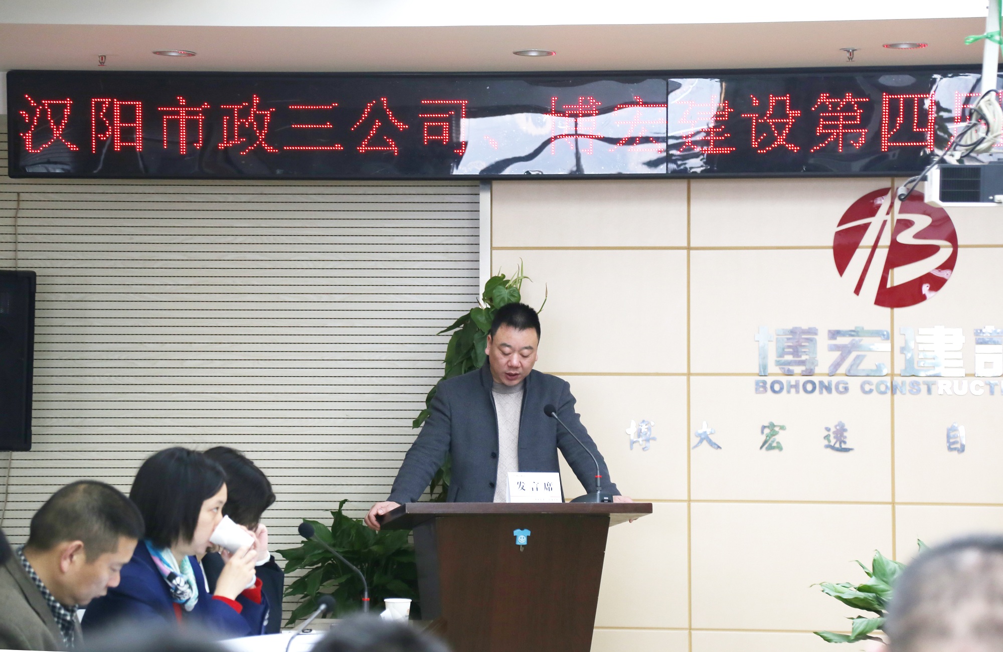 2018年3月23日上午,漢陽市政三公司、博宏建設第四屆第二次聯合職工代表大會在莊嚴的國歌聲中順利開幕,漢陽市政集團公司副總經理邢榮斌蒞臨會議現場,公司領導班子及31名職工代表出席會議,會議由工會主席李俊主持。