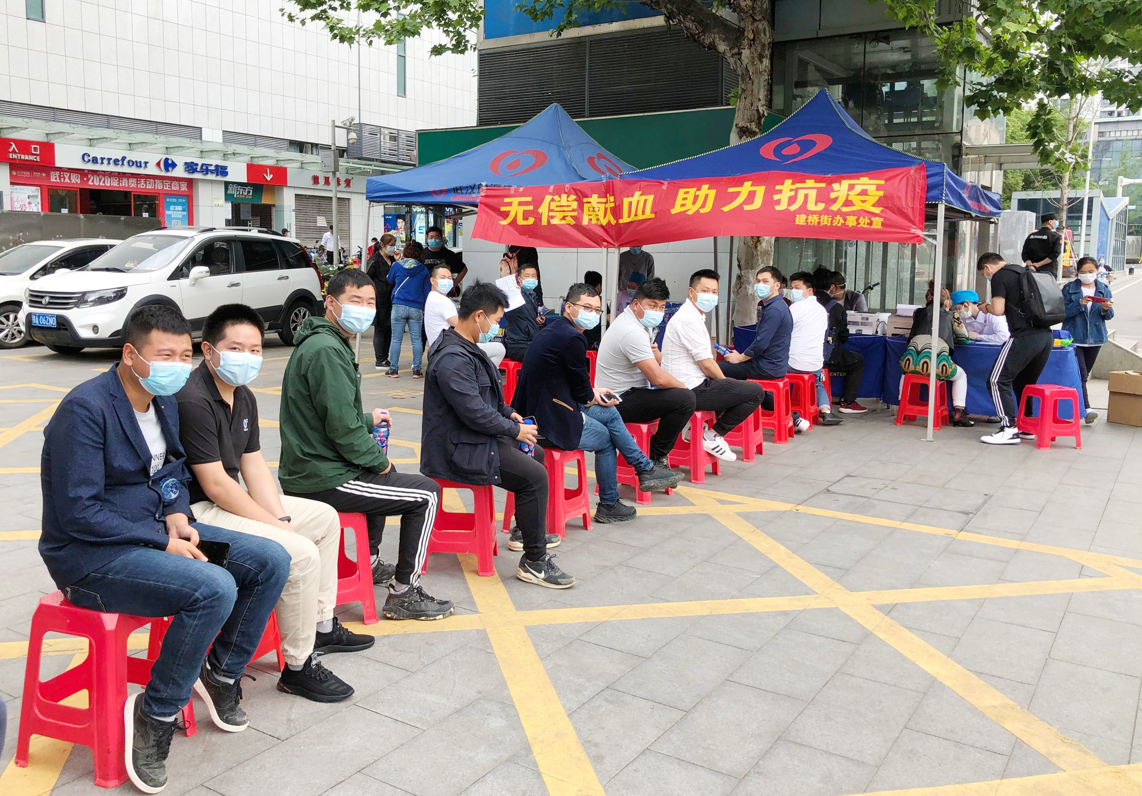 ????????? “無償獻血,助力抗疫。”5月9日上午,由漢陽區建橋街組織的無償獻血活動在漢陽鐘家村閩東國際城附近開展,博宏建設積極響應號召,用實際行動緩解全市臨床用血壓力,為抗擊疫情加油助力。