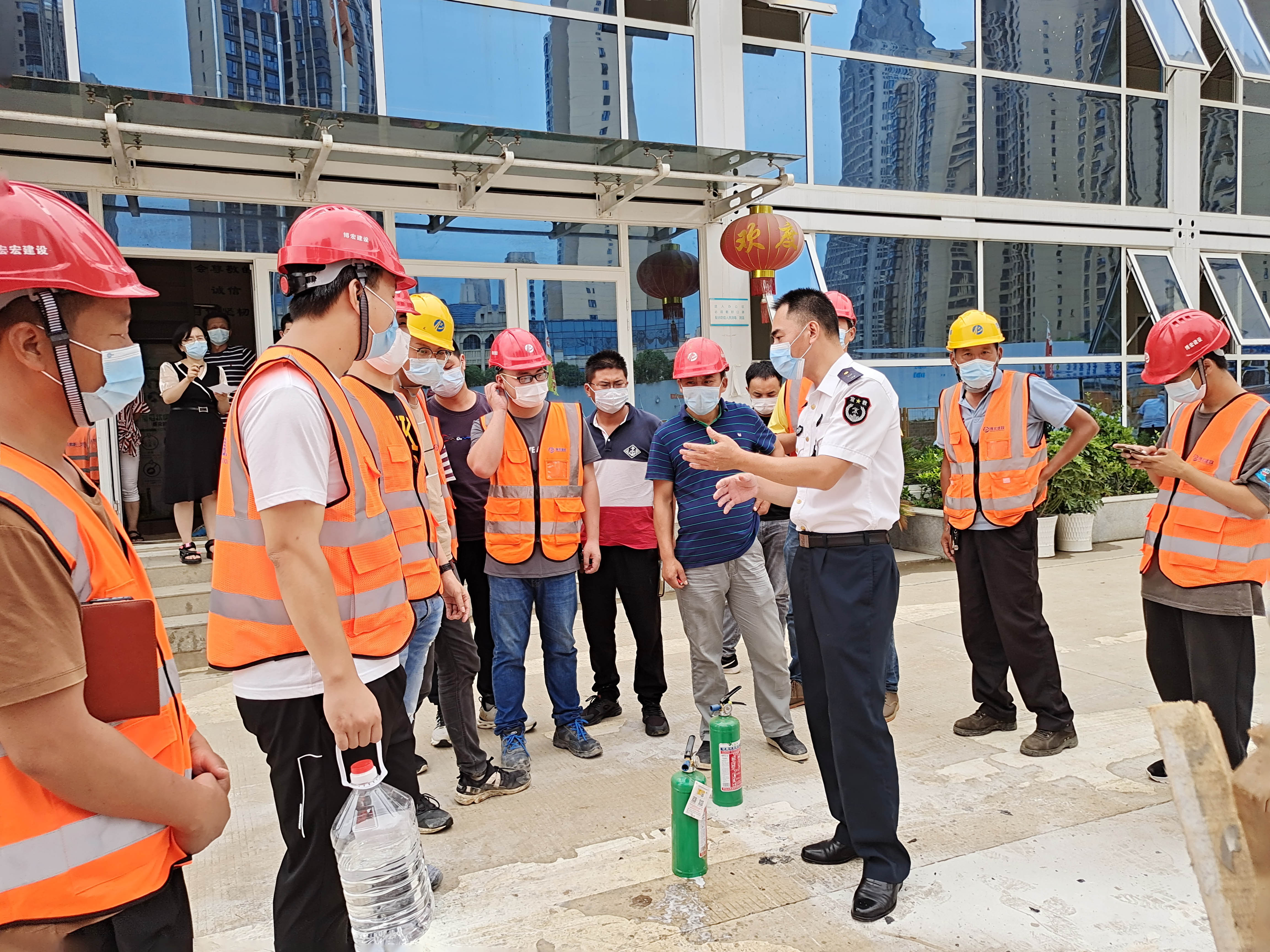 演練中,公司邀請(qǐng)到湖北省楚安防火宣教中心謝小秋教官來到項(xiàng)目現(xiàn)場(chǎng)進(jìn)行了消防安全知識(shí)講解。期間,重點(diǎn)介紹了各類滅火器的使用方法和適用場(chǎng)景,并現(xiàn)場(chǎng)進(jìn)行了演示。