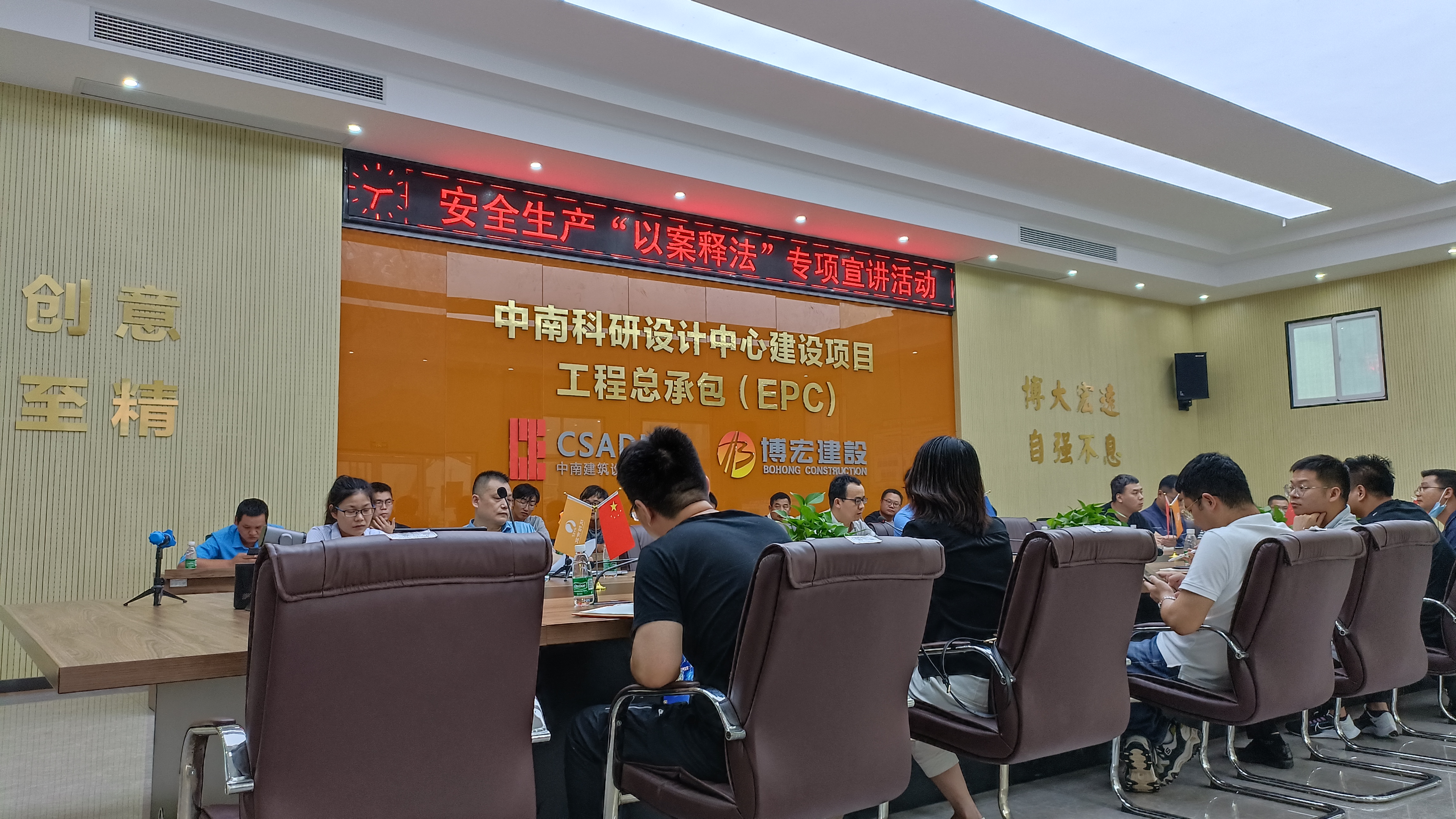 6月19日下午2點,“以案釋法”專項宣講活動在中南科研設計中心項目部召開,公司法律顧問吳律師就安全生產典型案例做專題宣講,詳細闡釋了基本案情、調查處理結果及適用法律等內容,并對2021年新修訂的,即將于9月1日施行的《中華人民共和國安全生產法》有關條文修正前后進行了對照解讀。漢陽市政博宏公司總經理助理周昌文,全體項目經理、項目負責人、生產經理及安全員共計40余人參加了本次宣講活動。