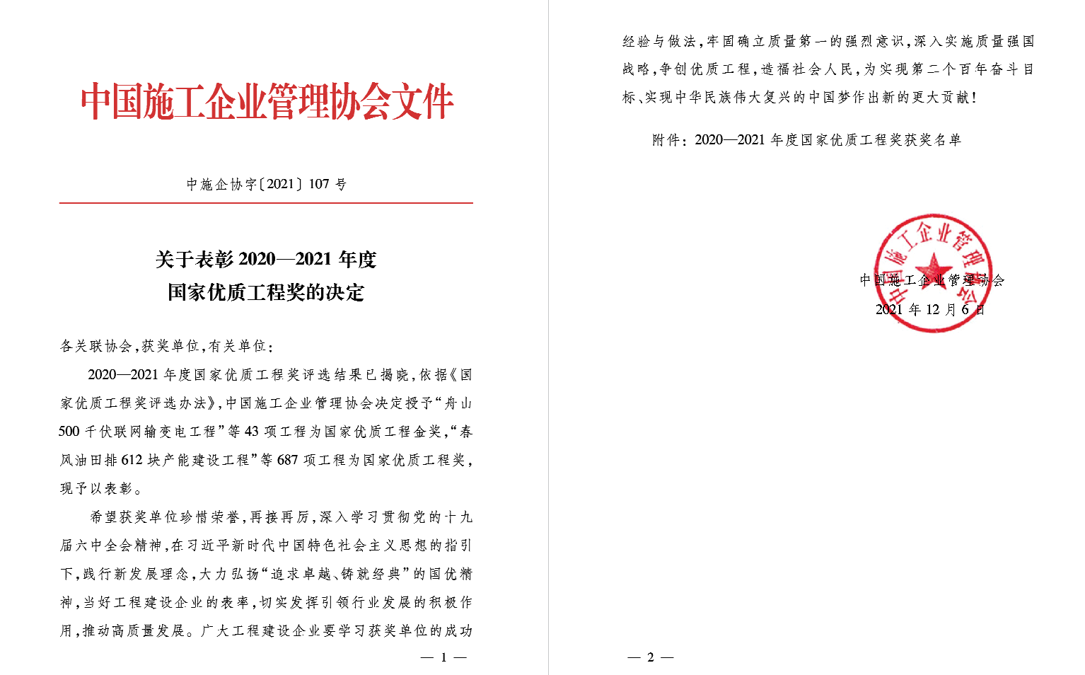 國家優(yōu)質(zhì)工程獎是我國工程建設(shè)領(lǐng)域設(shè)立早、規(guī)格高,跨行業(yè)、跨專業(yè)的國家級質(zhì)量獎勵,評選范圍涵蓋冶金、有色、煤炭、石油、化工、電力、水利、鐵路、公路、市政和房屋建筑等工程建設(shè)各個行業(yè)。該獎項倡導(dǎo)“追求卓越、鑄就經(jīng)典”的精神理念,評定注重工程質(zhì)量的全面、系統(tǒng)管理。