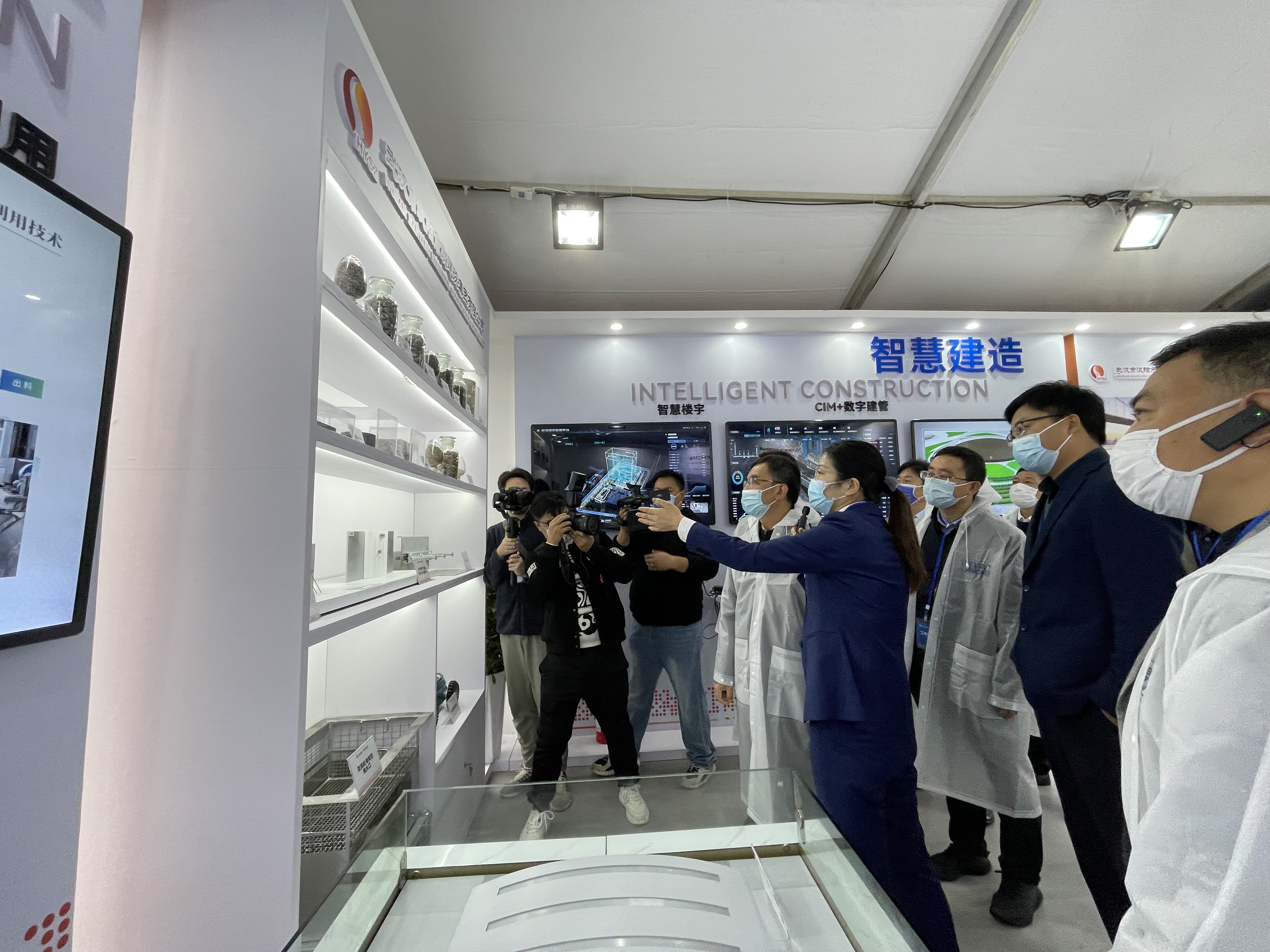 房建創新技術區展示了公司8項代表性創新技術。宜昌市天創覽江府和攬月府項目均使用裝配式后澆帶保護墻、墻體預制管線槽和智慧噴淋系統等技術,在創新技術的加持下,將大幅度推動高品質建造,助力高品質生活,為城市的綠色發展貢獻企業力量。