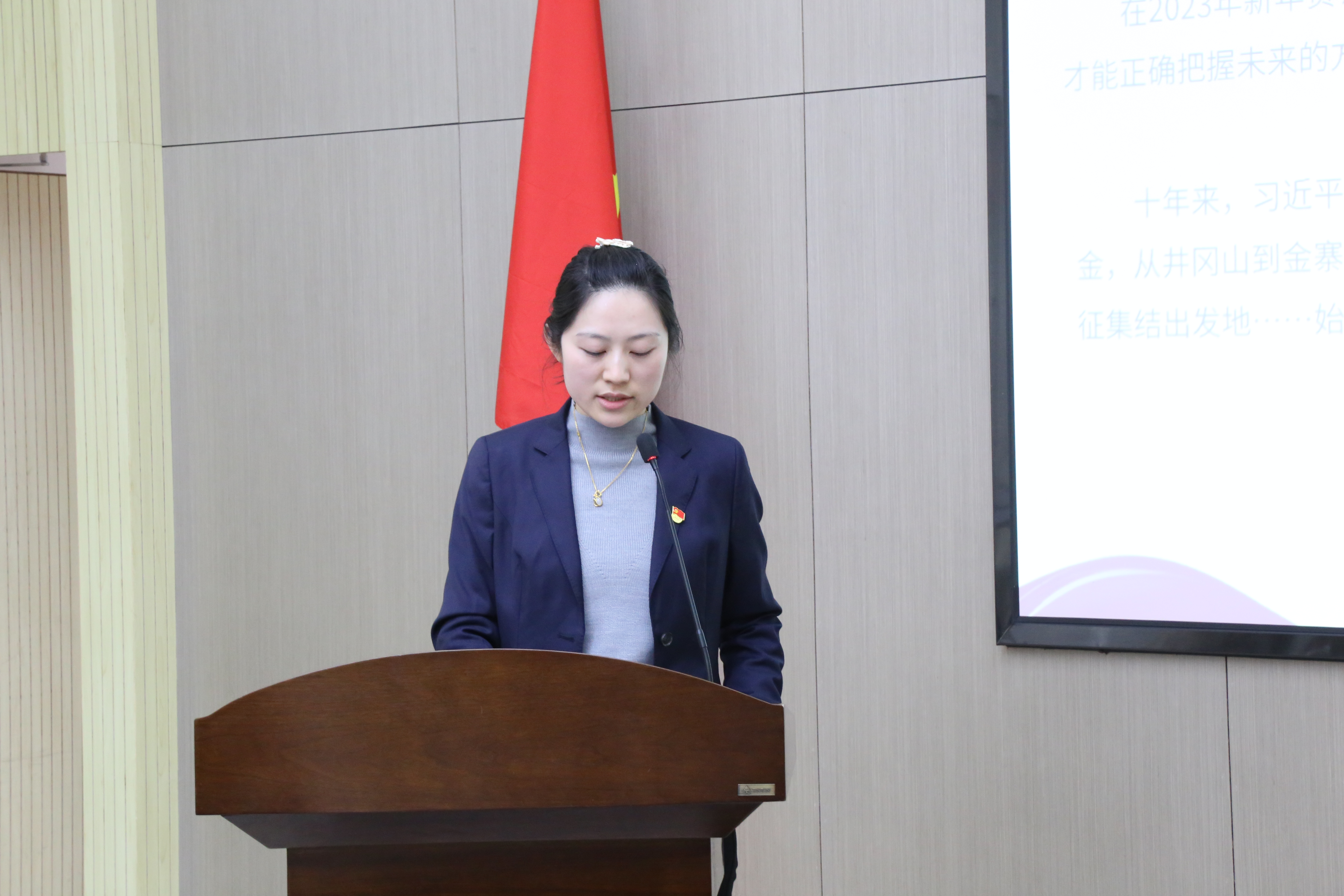 漢陽(yáng)市政集團(tuán)機(jī)關(guān)第一黨支部黨員洪珂為帶領(lǐng)全體黨員學(xué)習(xí)習(xí)近平總書記重要講話——2023年新年賀詞。講話精神也讓全體黨員更加深刻地認(rèn)識(shí)到今天的中國(guó)是夢(mèng)想接連現(xiàn)實(shí)的中國(guó)、是充滿生機(jī)活力的中國(guó)、是賡續(xù)民族精神的中國(guó)、是緊密聯(lián)系世界的中國(guó)。明天的中國(guó),力量源于團(tuán)結(jié),全體黨員應(yīng)當(dāng)厚植家國(guó)情懷、涵養(yǎng)進(jìn)取品格,以?shī)^斗姿態(tài)激揚(yáng)青春,不負(fù)時(shí)代,不負(fù)華年。