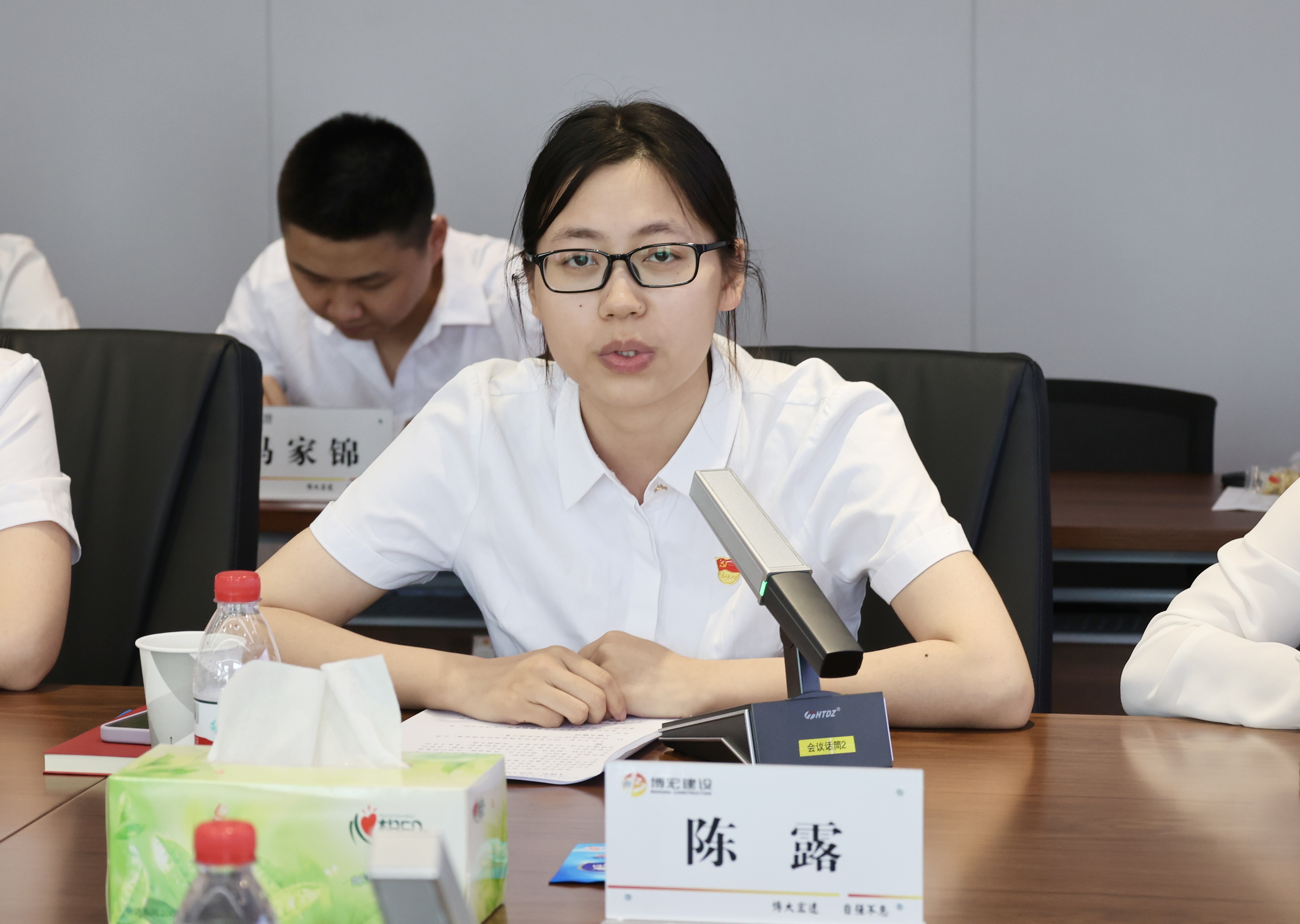 陳露對黨員彭迎的先模故事進行了分享。工作認真,腳踏實地;勤懇務實,關心同事;工作認真負責,將個人成長融入公司發展是彭迎的標簽。工作中,她能夠站在公司的角度,為部門管理出謀策劃;能夠很快適應新的崗位,在新的業務區域快速開展工作;能夠在業余時間精專業務知識,提高工作能力。彭迎積極進取、熱情奉獻的事跡打動著現場的每一位黨員。