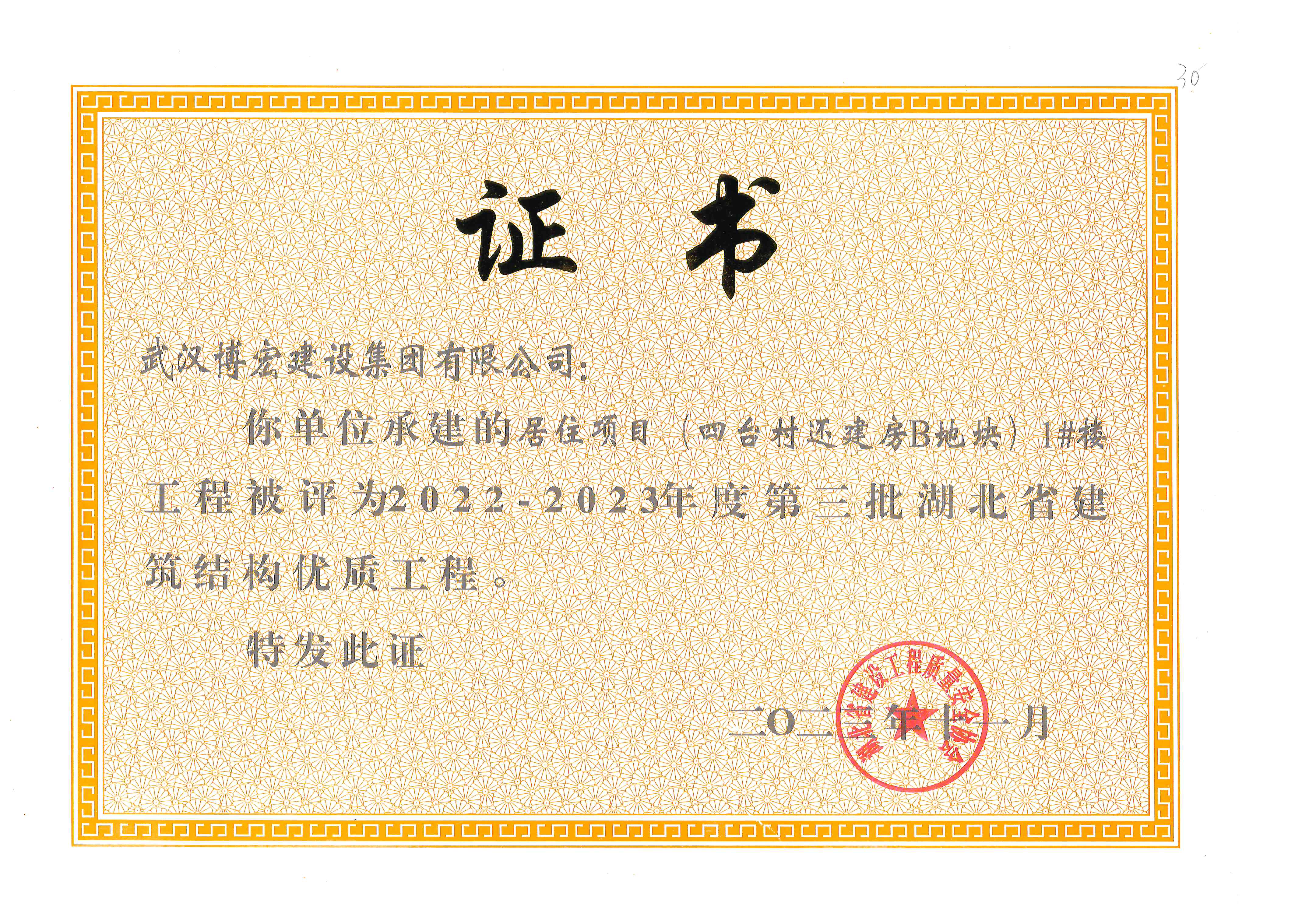 近日,湖北省建設工程質量安全協會公布2022-2023年度第三批湖北省建筑結構優質工程項目名單,由博宏建設集團承建的居住項目(黃金口村還建房B地塊)17#樓,居住項目(四臺村還建房B地塊)1#樓,新建商業服務業設施項目(中南科研設計中心)副樓,商業、商務設施、居住項目(產權調換房)3#樓、6#樓,國投·汀蘭7#樓、8#樓、9#樓、12#樓,隨州市中心看守所辦公區、監區及配電房榮獲湖北省建筑結構優質工程獎。