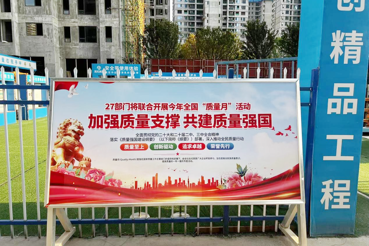 “質量月”活動期間,公司各在建項目利用橫幅、展板、宣傳畫在辦公區、生活區、施工現場等主要活動區域對質量月進行全方位的宣傳,努力營造人人關心質量、重視質量、參與質量、享受質量的濃厚氛圍。