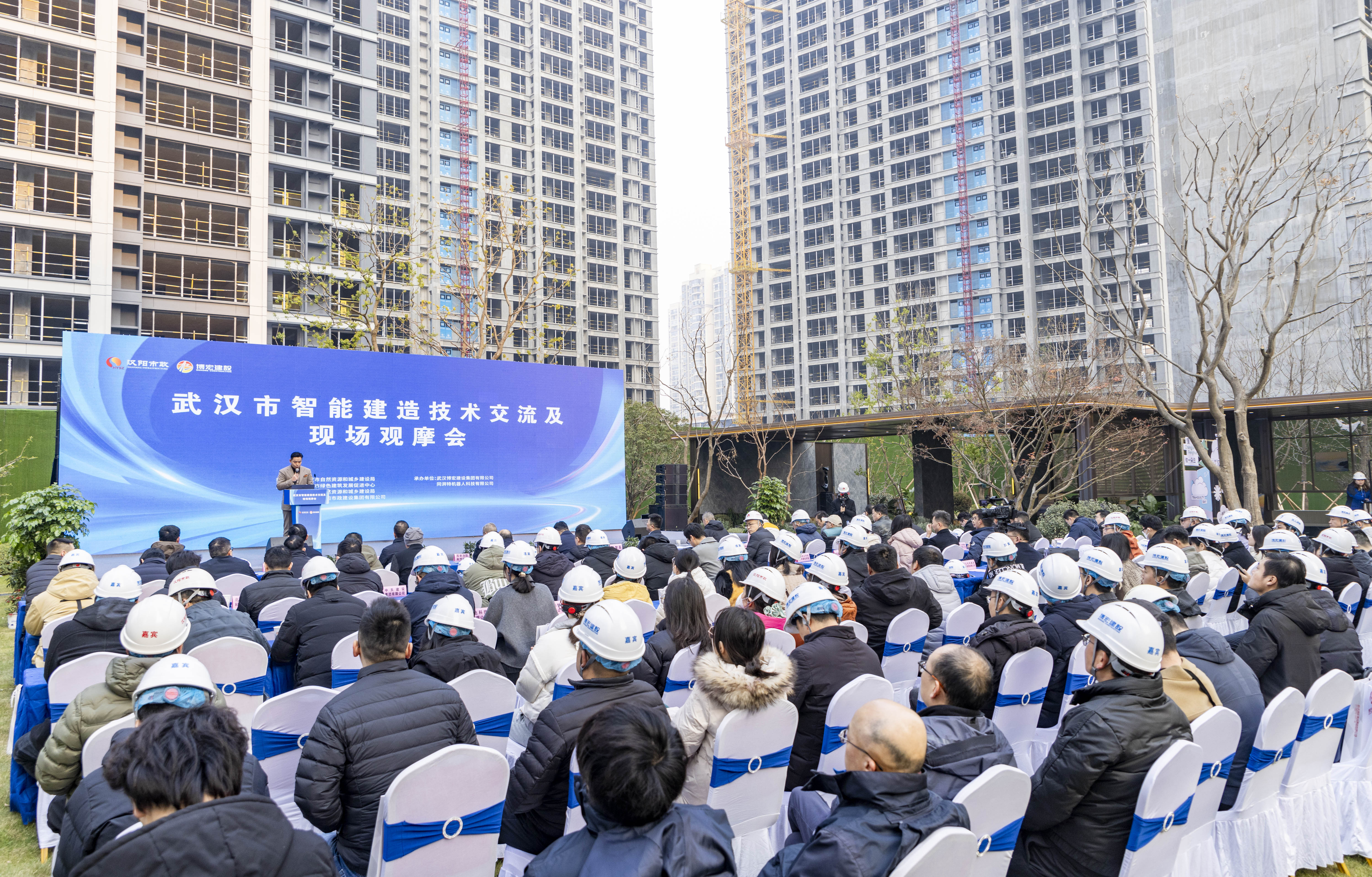 1月3日,由武漢市自然資源和城鄉建設局指導,武漢市綠色建筑發展促進中心、漢陽區自然資源和城鄉建設局、武漢市漢陽市政建設集團有限公司主辦,武漢博宏建設集團有限公司等兩家單位聯合承辦的武漢市智能建造技術交流及現場觀摩會在云棲風華項目舉行。